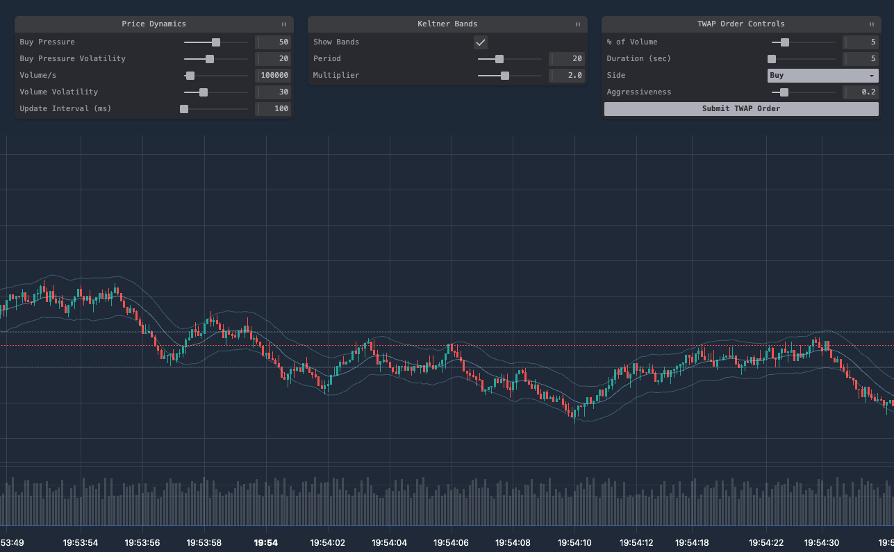 You can make it more bullish, more bearish, more choppy, less choppy...and see how sustained intent, through a simulated TWAP order, affects overall movement.
